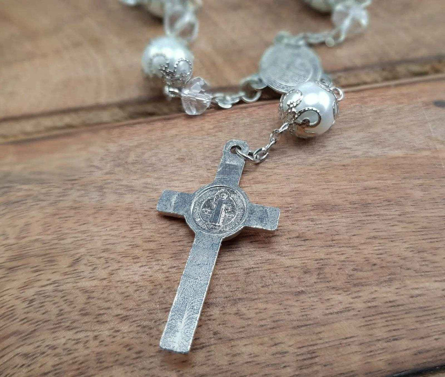 St Saint Benedict Car Rosary Transparent Glass Beads Car Rearview